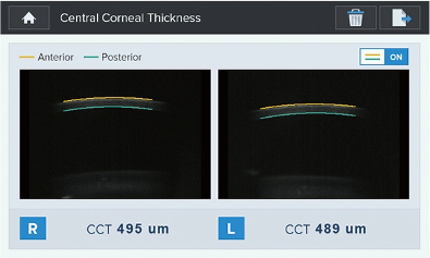 Благодаря встроенному пахиметру, прибор не просто фиксирует внутриглазное давление, а моментально вычисляет и отображает на экране компенсированное значение, учитывающее толщину роговицы. Кроме того, HNT-1P предоставляет возможность визуализации: он отображает срез роговицы с детализацией ее передней и задней поверхностей.